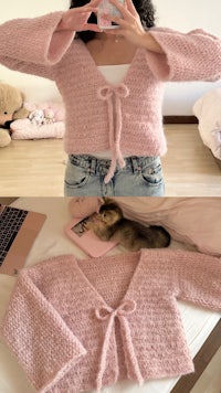 • The pattern can be used to create a tie-front cardigan with any yarn and hook size of your choice!
